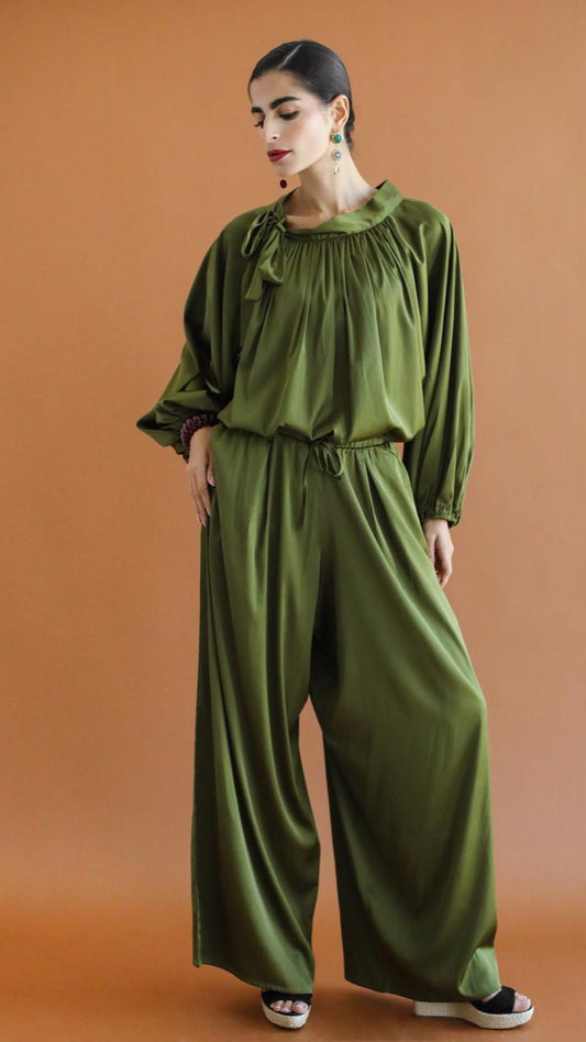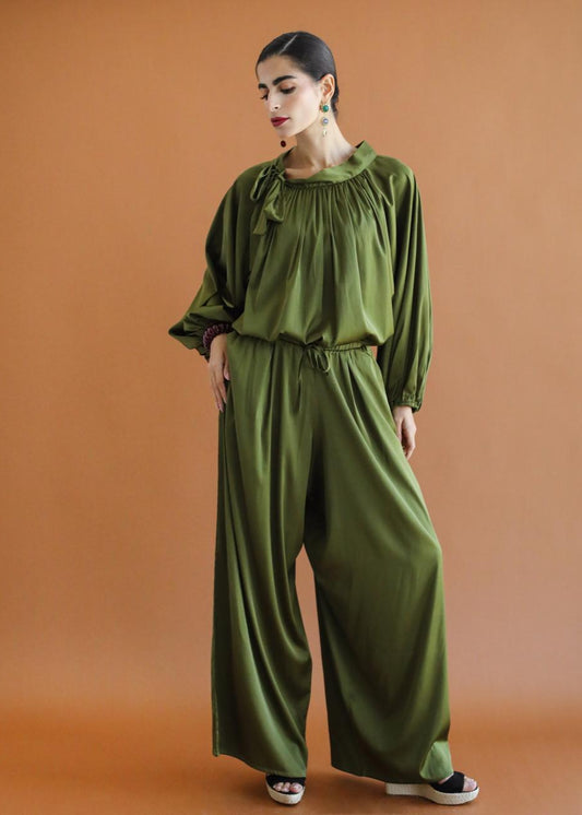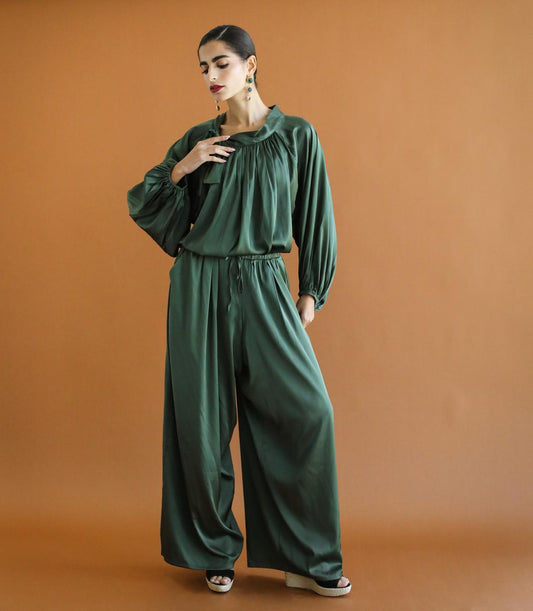 Galaxy Satin Green Palazzo Pants