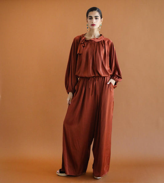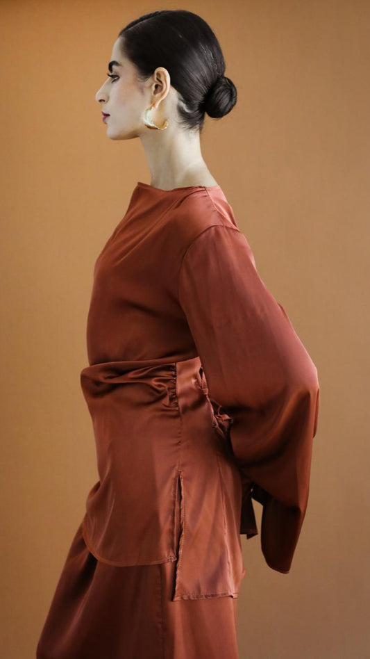 Galaxy Brown Drapes Blouse