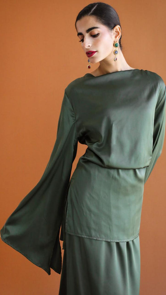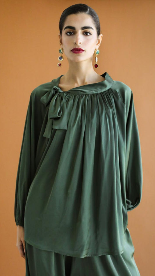 Galaxy Dark Green Draped Blouse